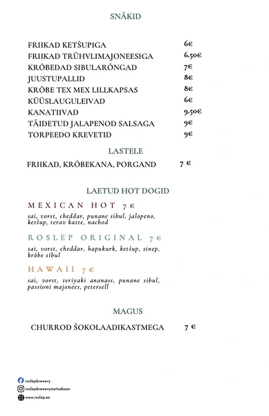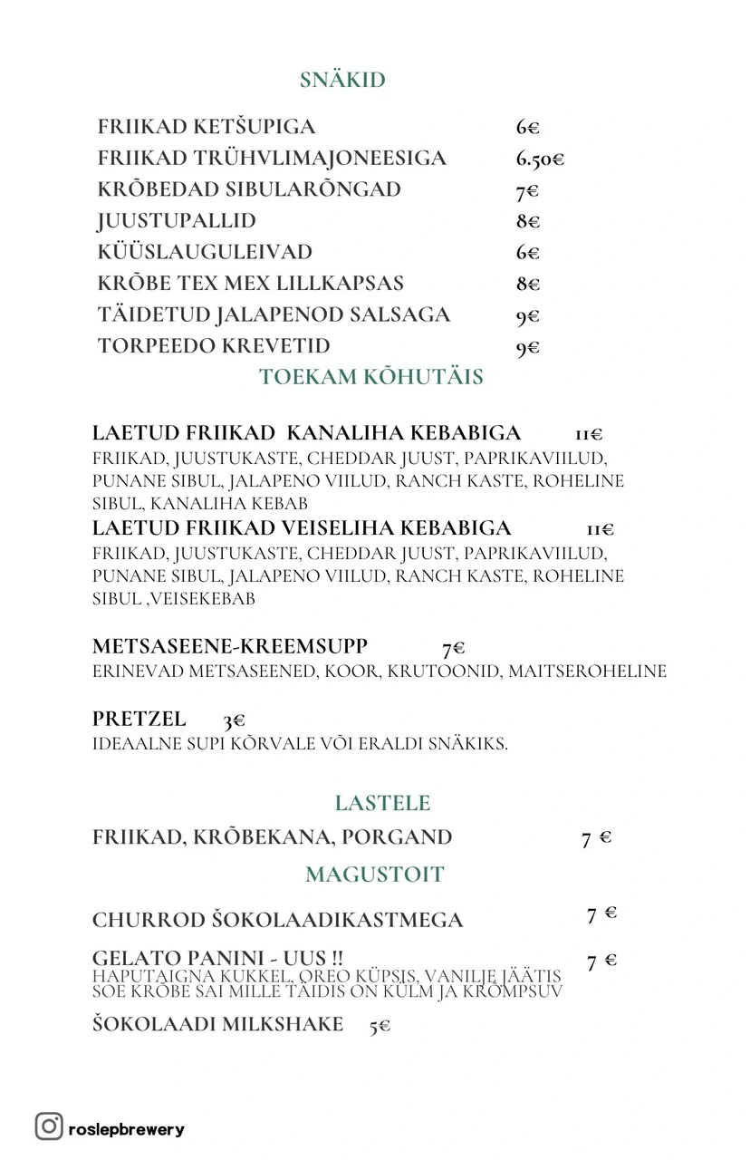 - Roslep Brewery Metsabaar on koht kus saab head õlut, kokteile , snäkke, toitu ja ka muusikat nautida.